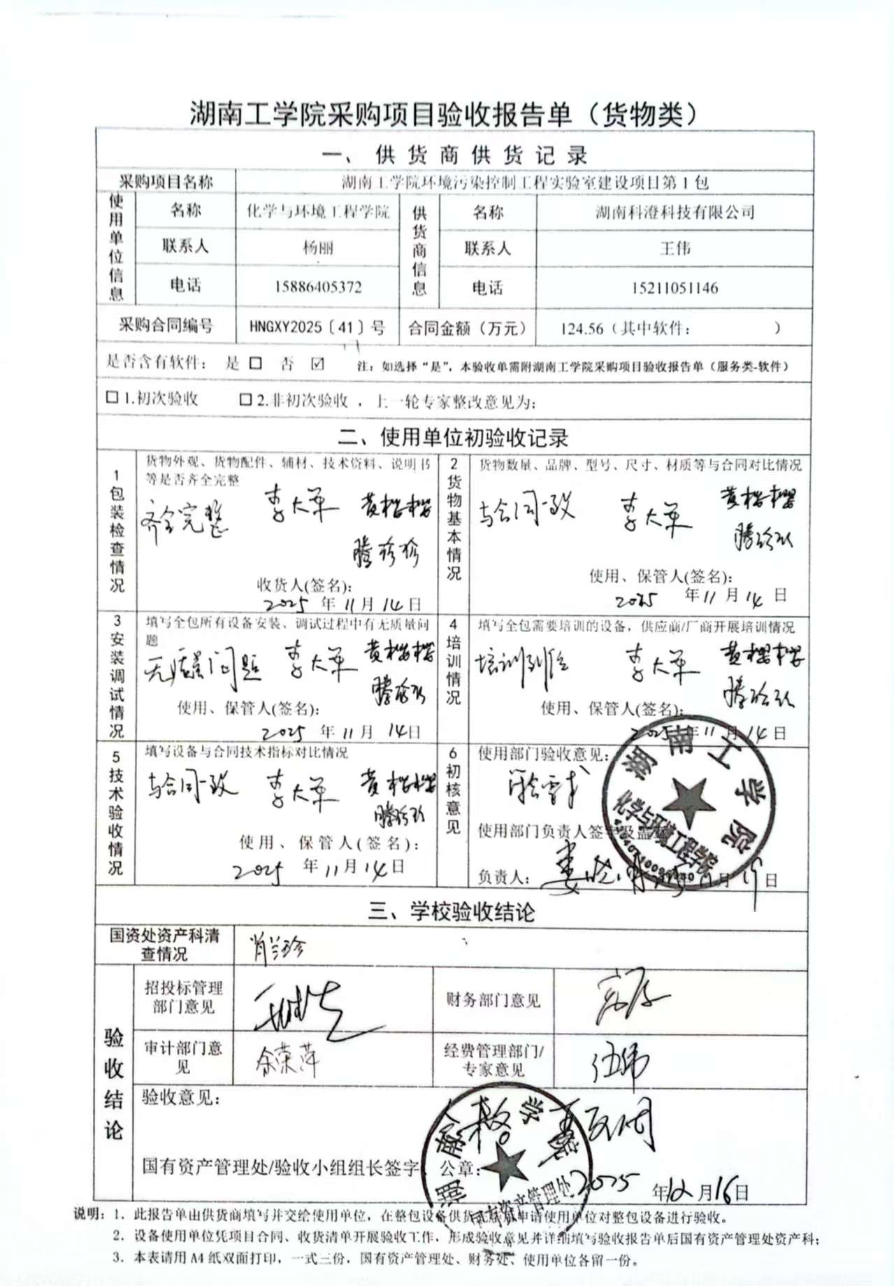 根据国有资产管理处对采购项目的验收安排,2025年12月10日国有资产管理处组织招投标管理与服务中心、审计处、财务处、教务处以及使用部门代表对供应商的项目进行现场验收。