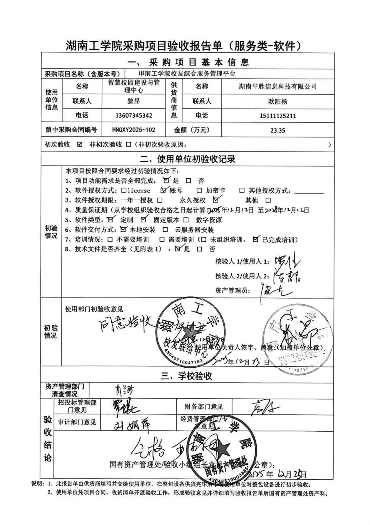2025年12月关于HNGXY2025【102】号 购字2025【44】号采购项目验收情况公告