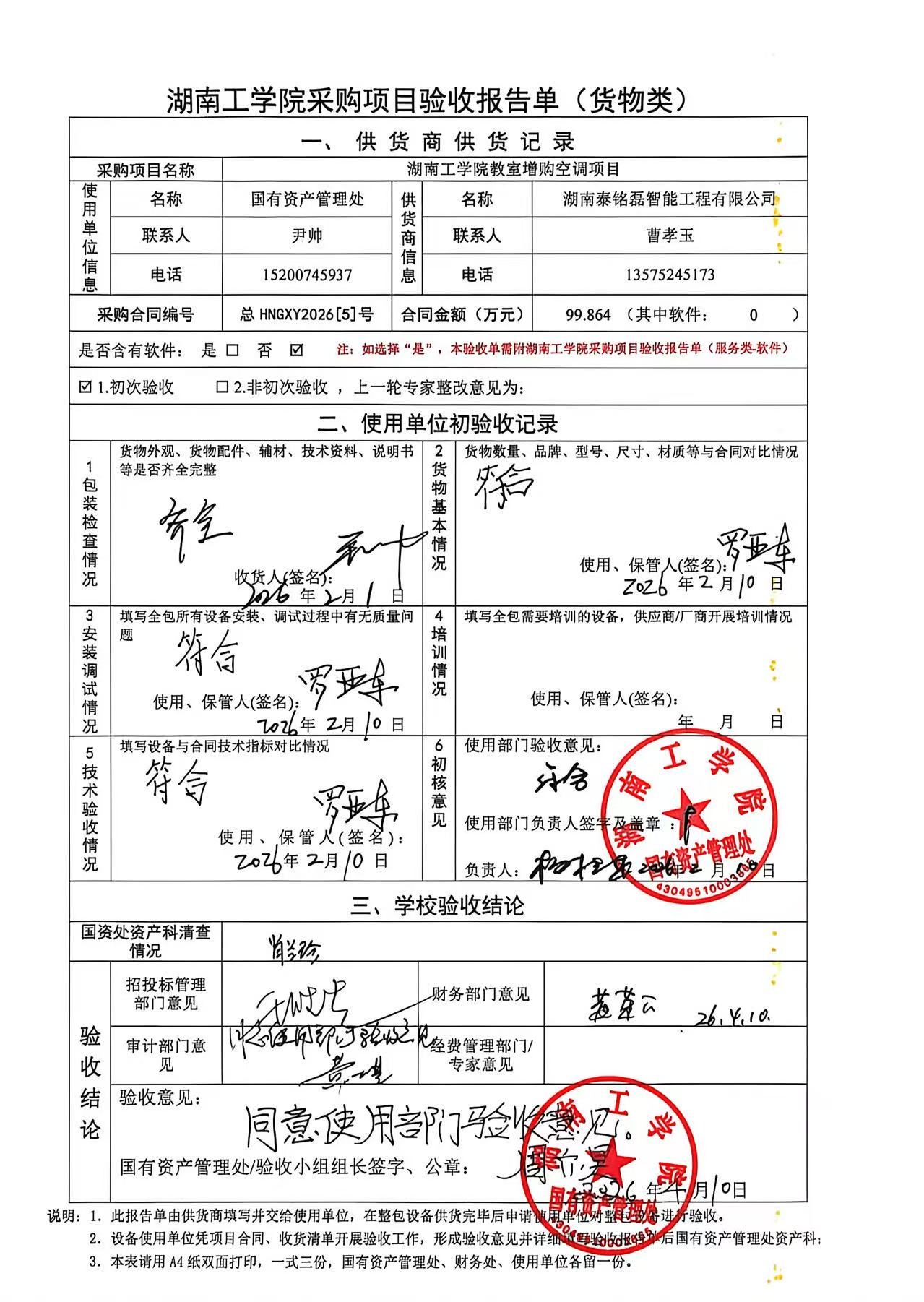 根据国有资产管理处对采购项目的验收安排,2026年3月26日国有资产管理处组织招投标管理办公室、审计处、财务处以及使用部门代表对供应商的项目进行现场验收。