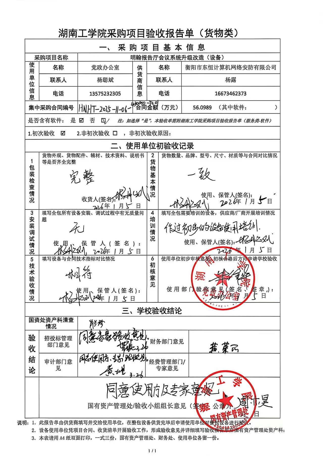 根据国有资产管理处对采购项目的验收安排,2026年3月26日国有资产管理处组织招投标管理办公室、审计处、财务处以及使用部门代表对供应商的项目进行现场验收。