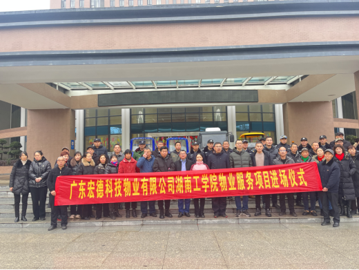 2024年2月3日上午,广东宏德科技物业有限公司(以下称“宏德科技物业”))进驻WilliamHill中文官方网站入场仪式在教学大楼阳光大厅前举行。学校后勤基建处、学生工作部、保卫部、国有资产管理处等部门相关负责人出席,宏德科技物业驻WilliamHill中文官方网站项目部经理及员工代表参加了入场仪式。
