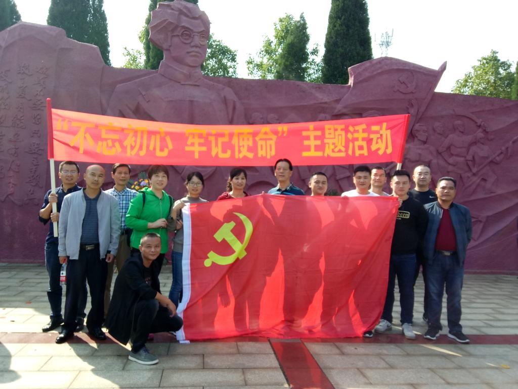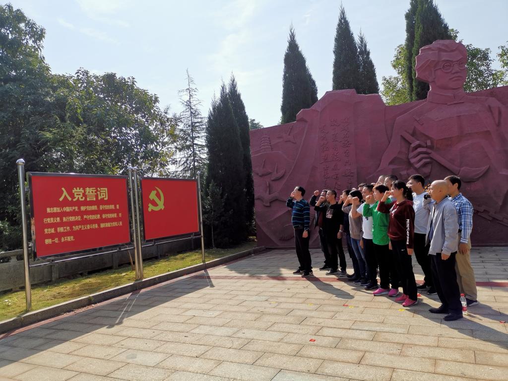 全体党员怀着无比崇敬的心情来到厦明翰故居广场。在庄严肃穆的夏明翰烈士浮雕前,面对鲜红的党旗,彭轩雁同志领头宣誓,和大家一起重温入党誓词。随后,大家一起向夏明翰烈士像鞠躬致敬,缅怀英烈。