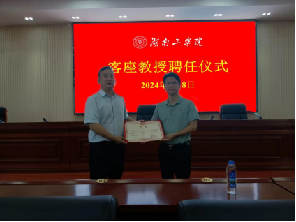 7月8日,WilliamHill官网客座教授聘任仪式在船山报告厅举行。校长曾广胜教授为湘潭大学教授、宁乡市科技副市长(挂职)杨秀康颁发客座教授聘书,化学与环境工程学院书记周立教授、院长辛俊亮教授等出席,人事处处长肖奎教授主持聘任仪式。