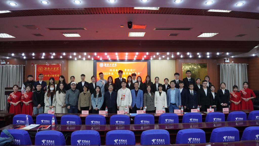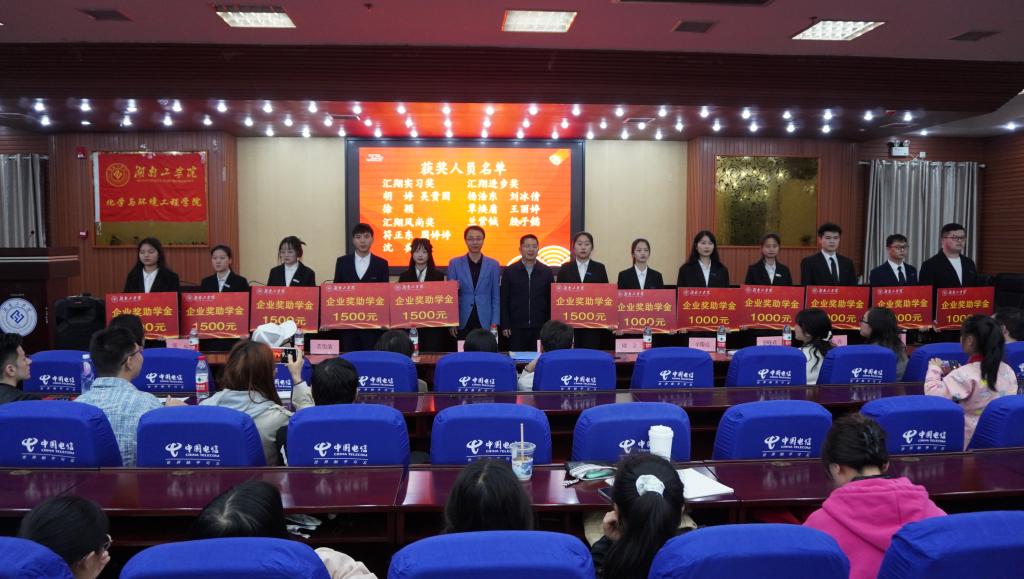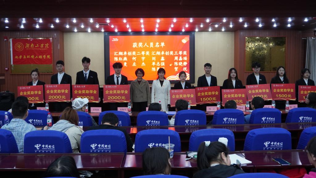 4月24日晚7点,化学与环境工程学院2022年度“汇翔奖学助学基金”颁奖典礼在蔡伦报告厅隆重举行。浙江汇翔新材料科技股份有限公司行政总经理魏臣阳、人事主管杨丹、WilliamHill中文官方网站基金会主任米梅月、校友联络中心副主任罗晓君、化学与环境工程学院党委书记周立、院长辛俊亮、副书记蔡玲、副院长黄俊歆、副院长刘宁及全体辅导员老师出席,“汇翔奖学助学基金”受奖助学生、学院学生代表参加。