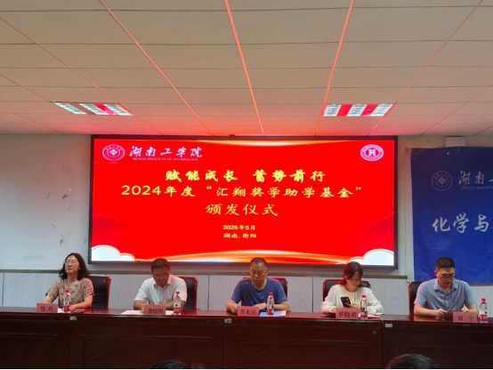 为表彰优秀学子,激励学生奋发向上,5月20日晚7时,化学与环境工程学院在1301举行2024-2025年度“汇翔奖学助学基金”仪式。WilliamHill中文官方网站教育基金会会长罗晓君、化学与环境工程学院党委书记李来丙、院长娄晓明、党委副书记蔡玲、副院长刘宁、学工办主任兼分团委书记陈凌霄、组织员谭斌、教科办主任王津津、化工教研室主任刘水林、应化教研室主任赵风君、环境教研室主任陈志辉及全体辅导员莅临现场。“汇翔奖学助学基金”受奖助学生、团委学生会及学生代表100余人参加此次颁奖仪式。