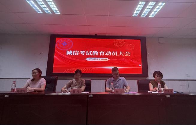 为强化考风建设,培育诚信学子,5月22日晚7点,化学与环境工程学院在1301召开诚信考试教育动员大会。学院党委副书记蔡玲、副院长刘宁、教学科研办公室主任王津津、学工办主任兼分团委书记陈凌霄及全体辅导员出席,各班级学生代表共同参与,筑牢诚信考试思想防线。
