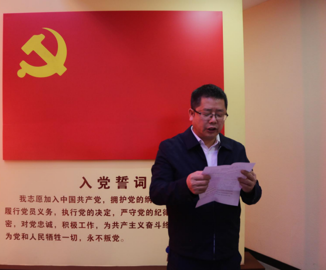 随后,他们一行人来到入党誓词前,周立带领第一、第二党支部全体成员重温入党誓词,追行红色足迹,激励大家不忘初心、砥砺前行。