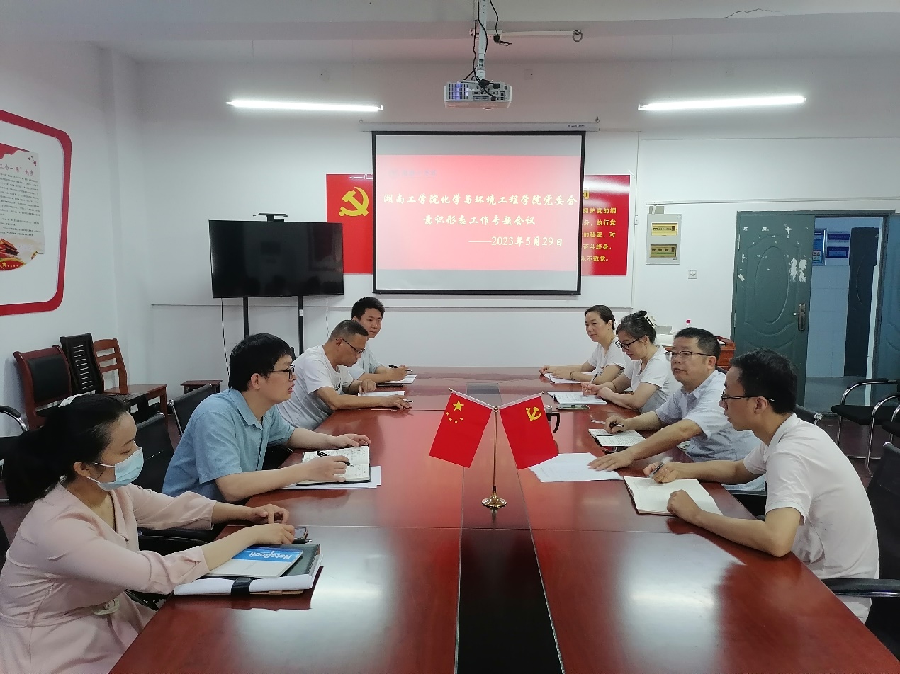 化学与环境工程学院党委于2023年5月29日上午10:00在1310会议室召开了意识形态工作专题会议,会议由学院党委书记周立主持,全体党委成员、学院领导班子成员、三办主任和辅导员参加了会议。