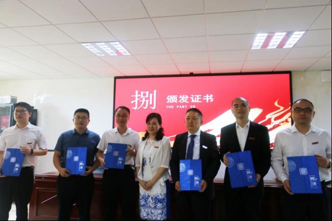 会议最后,辛俊亮为被聘为化学与环境工程学院客座教授的叶涛、刘继炎等6人颁发聘书。