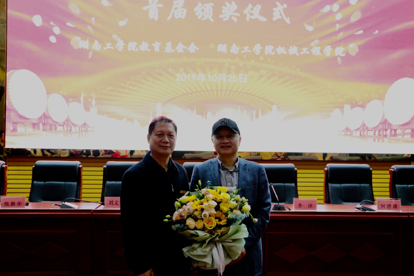 机械工程学院院长刘吉兆教授在致辞中向李冰校友表示了崇高的敬意和真挚的感谢。他希望全院学生以获奖同学为榜样,发奋读书,立志成才,实现李冰校友以及湖工寄予的厚望;希望全院老师以获奖老师为榜样,育人为本,进一步强化“奋斗的姿态,战士的担当”,以“工作干到感动自己,担当尽责不忘初心”的精气神,建设美丽新湖工,以优异的成绩向中华人民共和国建国70周年献礼。
