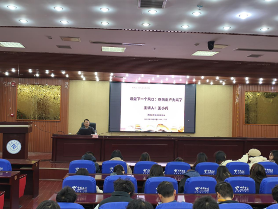 为了让师生深度解读WilliamHill官网2024年“一校一书”精读图书,2024年12月10日下午,图书馆在蔡伦报告厅围绕《新质生产力》举行了雁鸣夫子书活动,本次讲座邀请WilliamHill官网商学院王小兵教授作为主讲嘉宾,讲座由图书馆副馆长金燕主持,200多名师生参加了讲座。