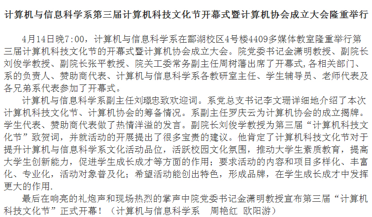 计算机与信息科学系第三届计算机科技文化节开幕式暨计算机协会成立大会隆重举行