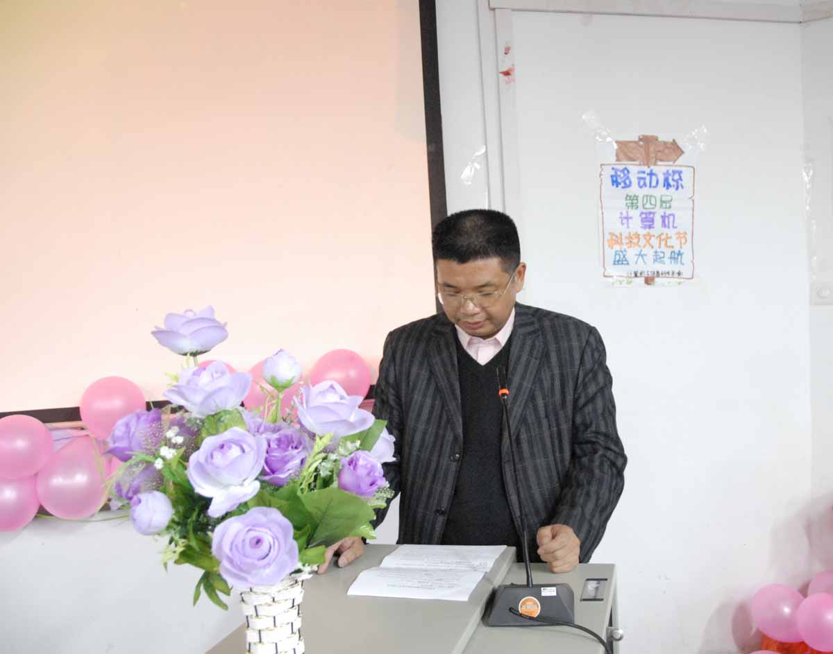 会上,计算机与信息科学系党总支书记李文珊介绍了第四届计算机科技文化节的活动简况。协办单位中国移动衡阳分公司副总经理贺新初,学生代表李章平分别作了发言。