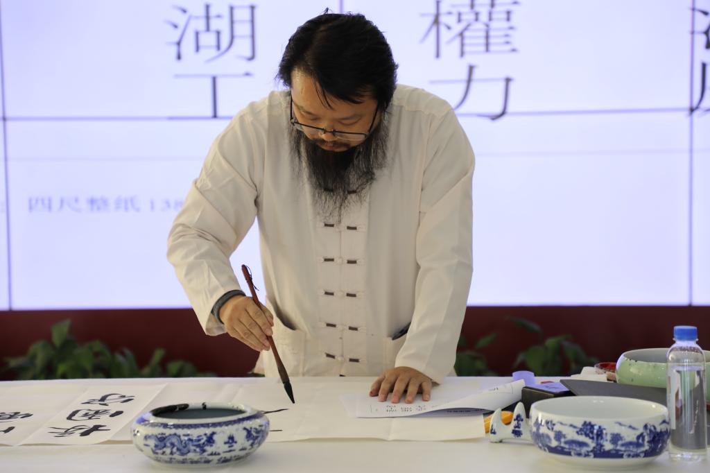 WilliamHill官网99级优秀校友、青年书法家许正扬创作现场