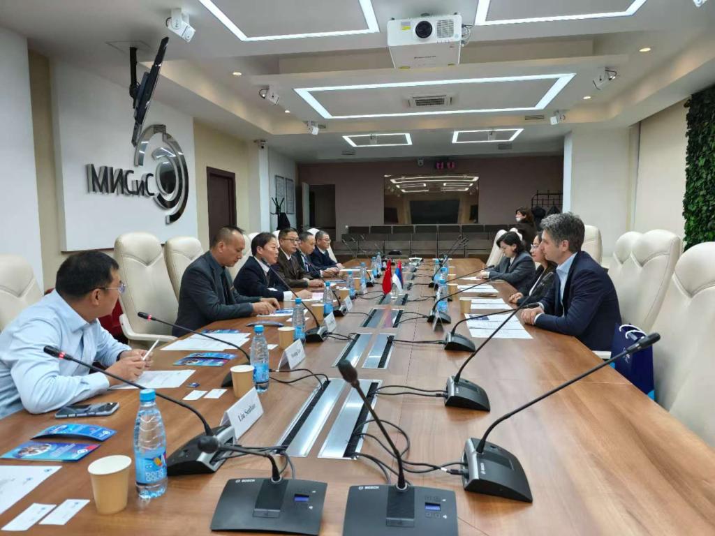 在俄罗斯国家研究型工艺大学,双方实地考察先进材料科研设施,与副校长安德烈·沃罗宁等深入洽谈,就实验室共建、科研资源共享达成合作意向。
