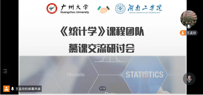 首先,王孟欣教授和温毅娴主任介绍了两校《统计学》课程团队的成员情况。接下来由王教授和谢梦珍老师分别介绍了两校《统计学》慕课教学的基本情况,两校教师针对教材的选择、线下线上混合式教学方法的完善、团队的建设、平台的使用等方面进行了热烈的讨论。技术服务方优学院团队分析了本学期该课程慕课平台开展的情况,解答了两校老师在慕课平台使用过程中遇到的问题。