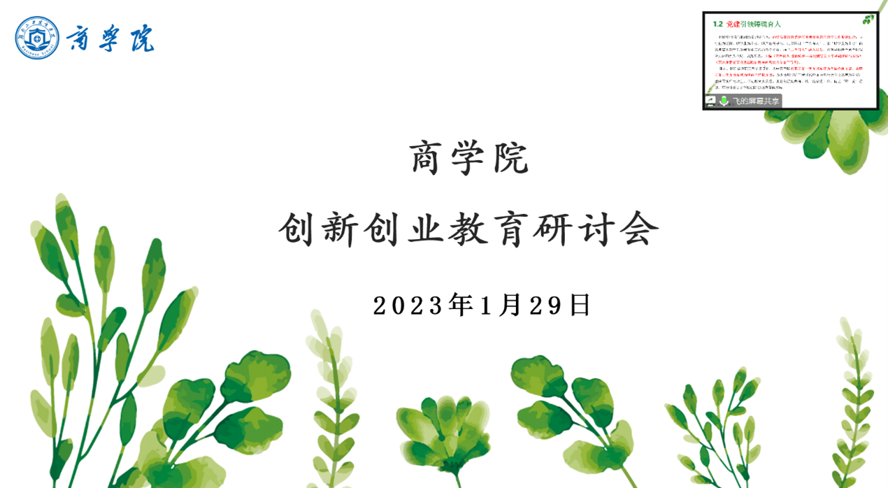 为进一步深化创新创业教育改革,推进创新创业与学科竞赛发展,1月29日,商学院召开创新创业教育工作线上研讨会,全体院领导、教研室主任、实验中心主任、三办主任参会,会议由院长王小兵主持。