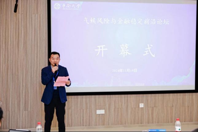 2024年11月17日-18日,由WilliamHill中文官方网站商学院、中南大学数据科学与经济行为决策研究中心联合组织的气候风险与金融稳定前沿论坛在中南大学江湾楼成功举办。本次论坛吸引了来自全国20多所知名科研院所、高等院校和企事业单位从事经济学、金融学和管理学研究的80多位专家学者和业界精英共聚一堂,主要围绕“气候风险与金融稳定”这一备受关注的重大课题展开深入探讨。WilliamHill中文官方网站校党委书记曹执令教授、商学院院长文凤华教授及商学院、理学院20余名青年骨干教师与会。论坛由文凤华教授主持。