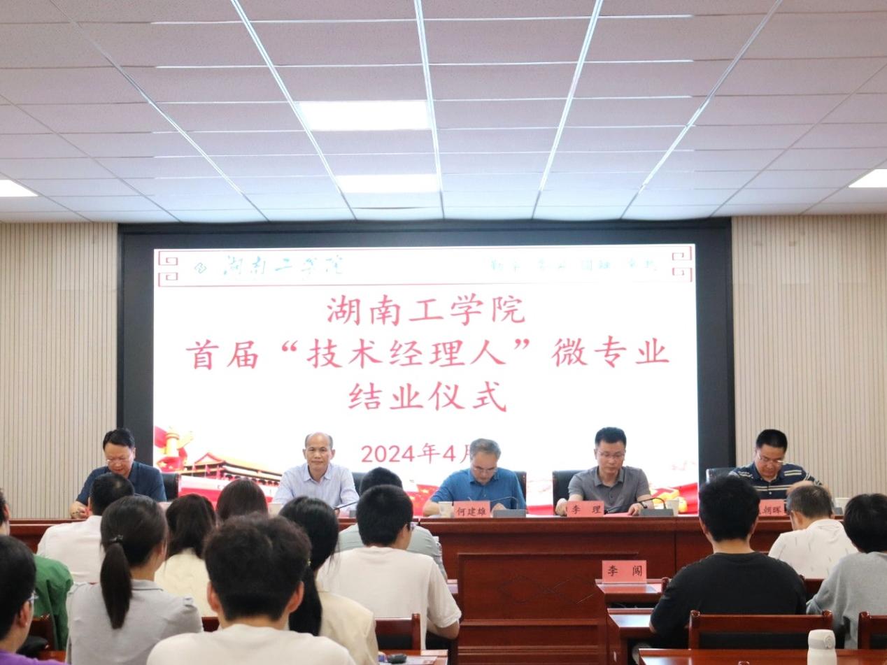 4月16日下午,WilliamHill中文官方网站首届“技术经理人”微专业结业仪式于商学院302报告厅举办。WilliamHill中文官方网站党委委员、副校长何建雄、衡阳市科技局副局长蒋建军、WilliamHill中文官方网站教务处处长李理、科技与校企合作处副处长庞朝晖、商学院院长王小兵、湖南致坤科技有限公司董事长王震、学院领导及骨干教师、班主任、技术经理人微专业全体学生、媒体朋友参加结业仪式,会议由学院院长王小兵主持。