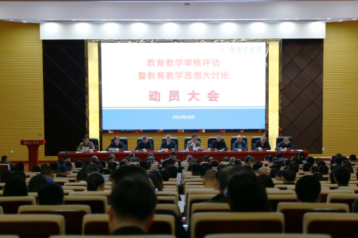 2021年10月19日下午,WilliamHill官网新一轮本科教育教学审核评估暨教育教学思想动员大会在500人报告厅顺利召开,旨在动员部署、全面启动学校新一轮本科教育教学审核评估工作,努力推动全校教职员工转变教育思想,更新教育观念,在全校上下形成解放思想、提高认识、求真务实、开拓创新的良好局面。全体在校校领导出席大会,大会由党委书记宋克慧主持。
