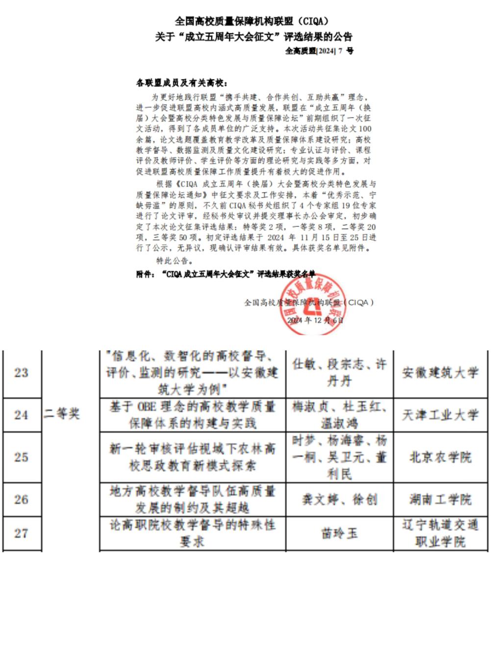 12月5日至7日,2024全国高校质量保障机构联盟(CIQA)年会暨高校质量保障体系建设现状与展望论坛在泉州举办,主题为“从现状到未来:高校质量保障体系创新实践与未来展望”。WilliamHill官网作为副理事长单位参会并获佳绩。