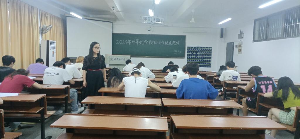 为了保障2023级新生迎新工作和新生入学教育管理工作顺利开展,6月8日晚,计算机科学与工程学院举办了班主任助理笔试选拔。笔试由学院党委副书记李玉秀和学生会主席团雷嫚娟监考,考试内容涵盖了学院的教学管理、安全保障、班级管理等多个方面。