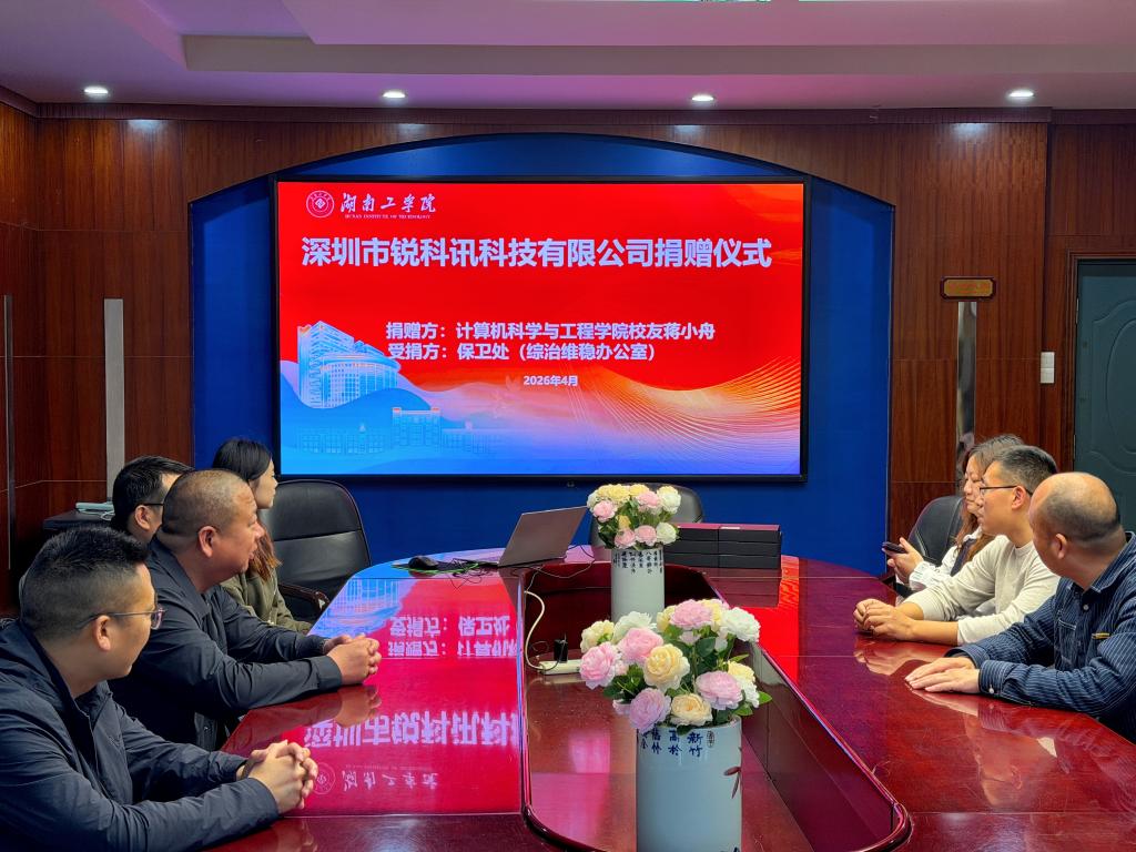 以科技践初心,以爱心护校园。近日,计算机科学与工程学院举行校友捐赠仪式。学院杰出校友、深圳市锐科讯科技有限公司总经理蒋小舟捐赠10台总价值26800元的4G智能AI无线移动视频监控终端,相关物品顺利交接至学校保卫处。学院党委书记任长安、院长陈敏、副书记黄馨仪,保卫部部长俞斌、副部长陈海辉、治安与校园秩序管理科副科长胡军及国家安全教育教研室副主任唐嘉璐出席仪式。