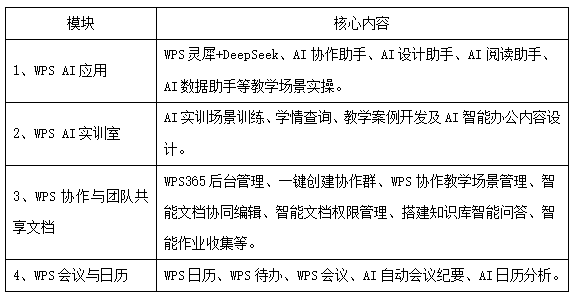 培训权益:(1)完成培训人员将有机会免费获得6个月的WPS 会员和AI会员权益(具体权益内容培训现场公布),助力人工智能通识实践教学。(2)完成培训将获得8学时金山办公继续教育学时。