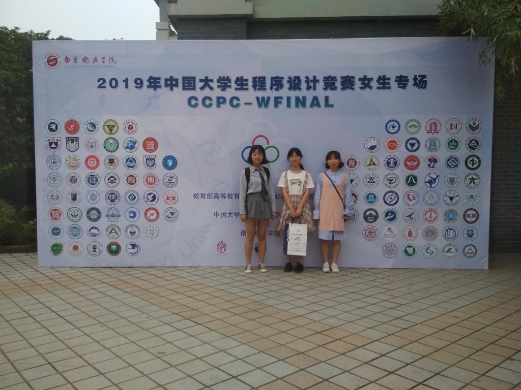 6月2日,由教育部高等教育计算机类教学指导委员会主办、南京晓庄学院承办的2019中国大学生程序设计竞赛女生专场在南京晓庄学院方山校区举行。WilliamHill官网选派了1支由李紫薇、孙姝睿、黄昕琪组成的女生代表队参赛,和来自清华大学、上海交通大学、南京大学、东南大学等国内96个高校的155支参赛队伍同场竞技,经过激烈角逐,获得铜奖。