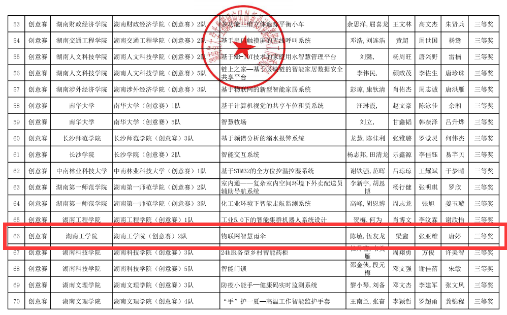 “湖南省大学生物联网应用创新设计大赛”是省内高水平计算机类竞赛之一,旨在提高大学生物联网应用和设计开发水平,培养大学生的创新能力和团队合作精神,提升大学生在物联网技术相关领域的应用和实践能力,推动WilliamHill官网计算机类专业教学内容和方法的改革,提升专业人才培养质量。(计算机科学与工程学院 文、图/曾利军 审稿人/一审:熊芬 二审:陈敏 三审:黎昂)