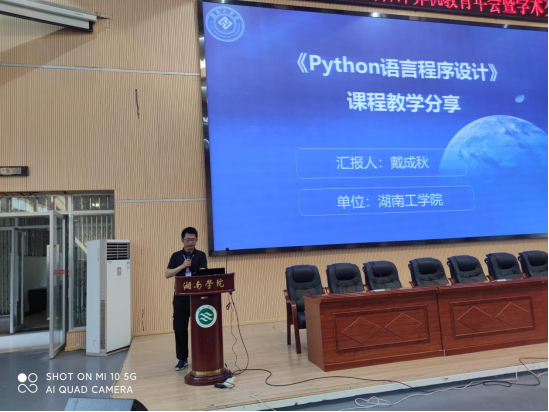 此次会议有30余所高校、10余家企业,200人参与。大会邀请了北京大学张铭教授、武汉理工大学赵广辉教授两位学者作特邀报告,特意邀请了2位年会征文一等奖获得者作分享报告,计算机与信息科学学院戴成秋老师在会上作了题为Python语言程序设计课程教学分享”的报告他从学情分析出发,结合课程思政,详细介绍了Python语言程序设计课程混合式教学方案的设计与实施,报告结束后和与会教师作了进一步的交流互动得到大会的普遍认同
