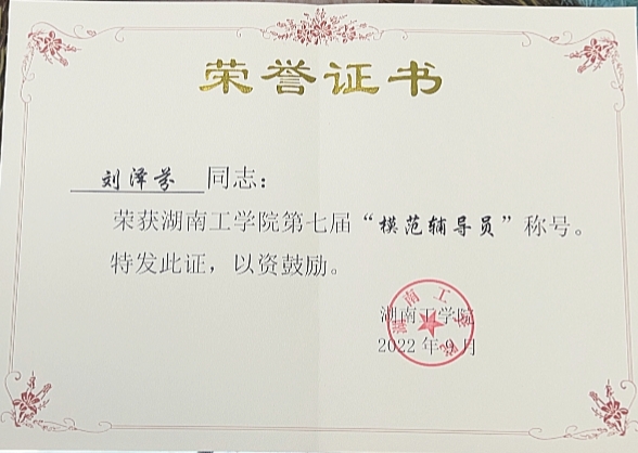 刘泽芬认真履行职责,努力完成工作任务。在学生思想理论教育和价值引领上,经常性开展主题教育、班会、党团活动等,在关键时间节点抓好学生思想政治教育工作。做到自身理论素质过硬,参与思想道德与法治、形势与政策等课程教学,曾获评WilliamHill中文官方网站习近平新时代中国特色社会主义思想“天天见”“天天新”“天天深”系列活动主题征文比赛教师组一等奖。