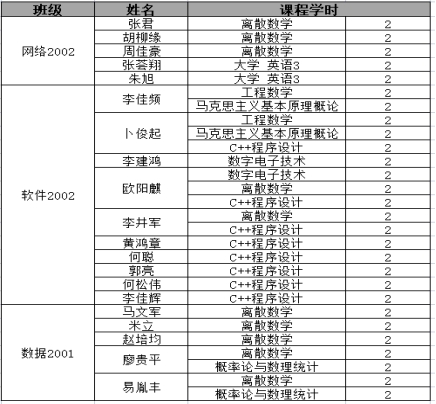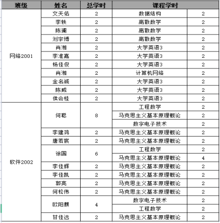 第9周缺课较多的学生名单