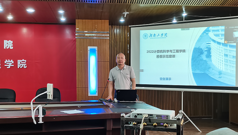 为了进一步落实学校教学质量提升工程的各项文件精神,提高教育教学能力,以及贯彻学校教务处“关于开展暑期教师课堂教学磨课活动的通知”(校教务〔2022〕 123 号)精神,计算机科学与工程学院以审核评估为契机7月29号上午9点在信息楼大会议室开展了面向全体教师的暑期磨课优秀示范教学展示活动活动由院长陈敏主持,采用线上线下相结合形式,全院在衡教师现场参加,衡阳市外的教师则采用线上腾讯会议的方式远程参加