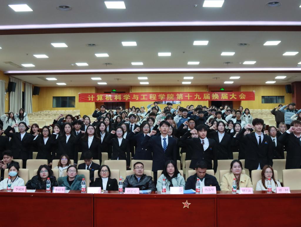 青春接力,奋斗不息。在第十九届团委学生会执行主席李琪康的带领下,新一届全体成员目光坚定、右手举拳,庄严宣誓“不忘初心、牢记使命,服务同学、奉献学院”,誓言铿锵,掷地有声。新征程的号角已经吹响,新一届团委学生会将以青春朝气、奋斗姿态,书写无愧于时代的青春华章,为学院高质量发展注入源源不断的青春动能!(计算机科学与工程学院 文/阳桂香、熊芬 图/计算机学院新媒体中心 审稿人/一审:熊芬 二审:刘泽芬 三审:任长安)
