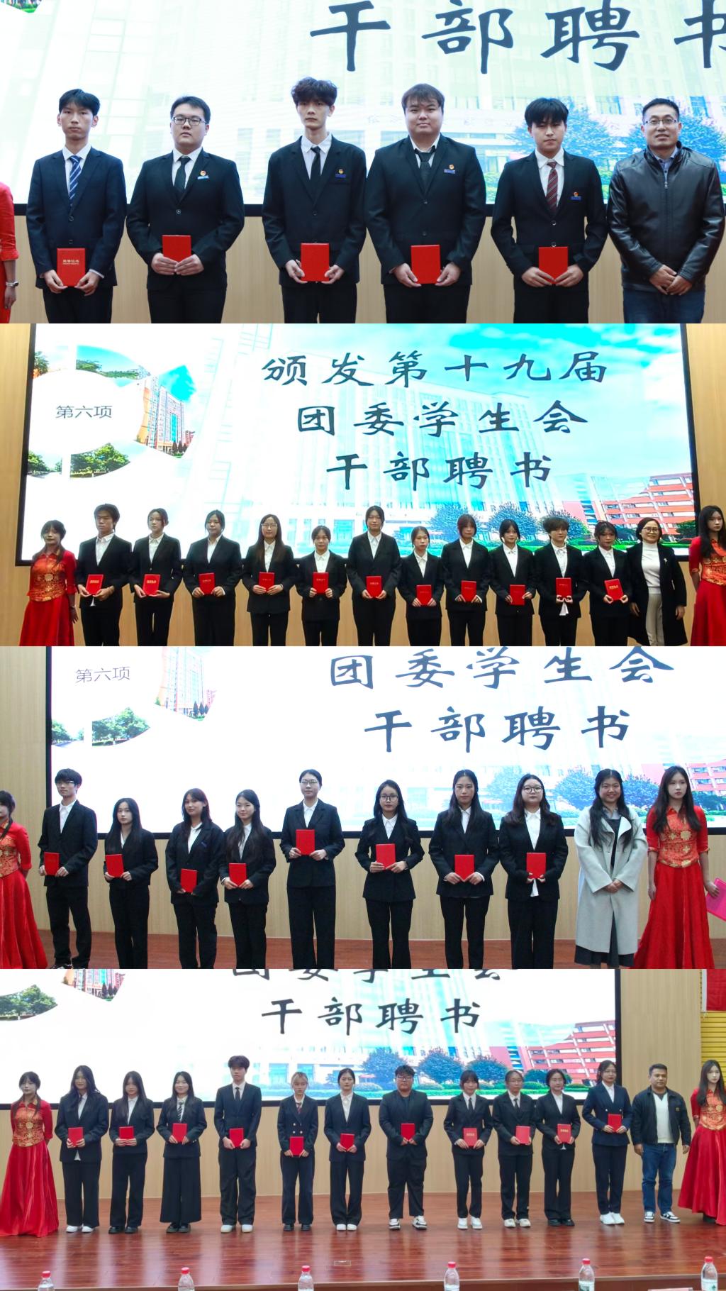 刘泽芬宣读《计算机科学与工程学院第十九届团委学生会任命决定》,与会领导老师为新一届团委学生会干部逐一颁发聘书。