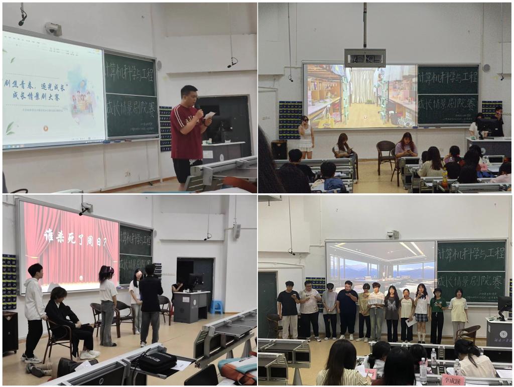为展现当代大学生的青春风采,激励同学们在成长道路上勇往直前,追逐光明。4月29日晚上,计算机科学与工程学院在信息楼3209教室举办了第四届“剧焦青春,逐光成长”大学生成长情景剧院级选拔赛。计算机学院党委副书记黄馨仪及全体辅导员出席本次大赛并担任评委。