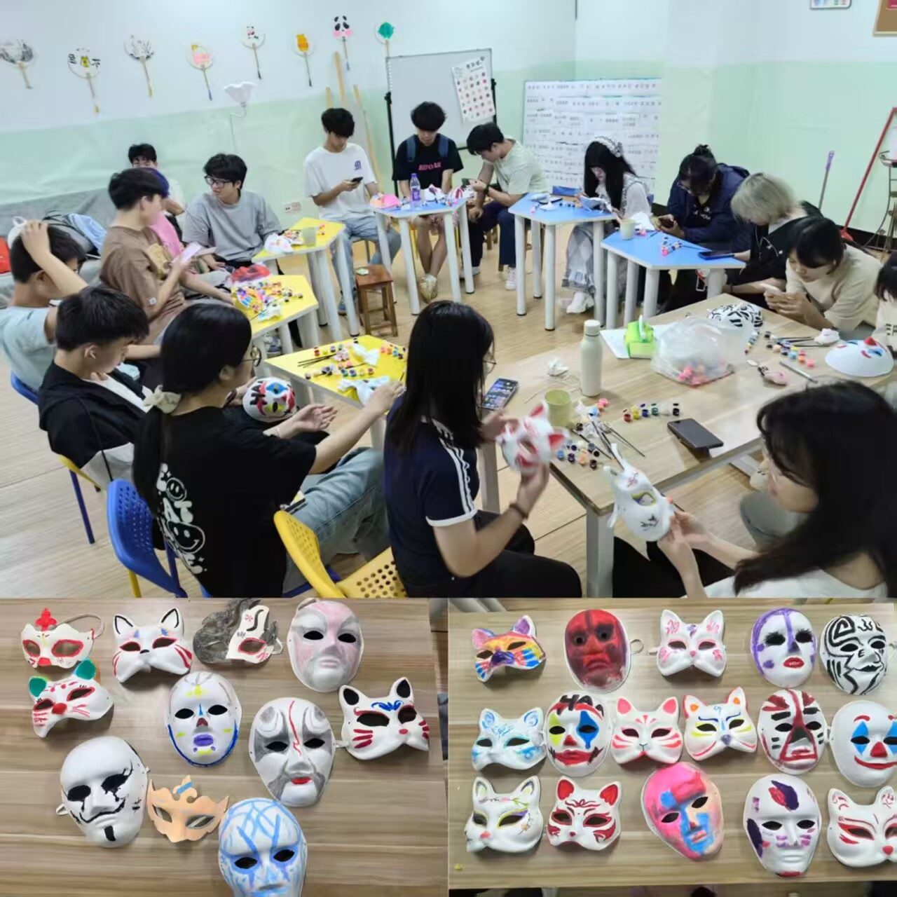 活动期间,学院陆续开展了一系列以艺术为媒介的心理健康主题活动,形式多样、内涵丰富,深受同学们喜爱。从“布艺生花,心绽晴空”不织布手工到“手绘我心,独‘具’匠心”面具手绘,再到“揭下刻板签,奔赴自在行”、“素胚凝绪,彩绘抚心”石膏娃娃手绘以及“拓印心迹,植愈时光”植物拓染活动,同学们在轻松愉悦的氛围中动手创作、表达内心,在沉浸式体验中释放压力、收获成长。