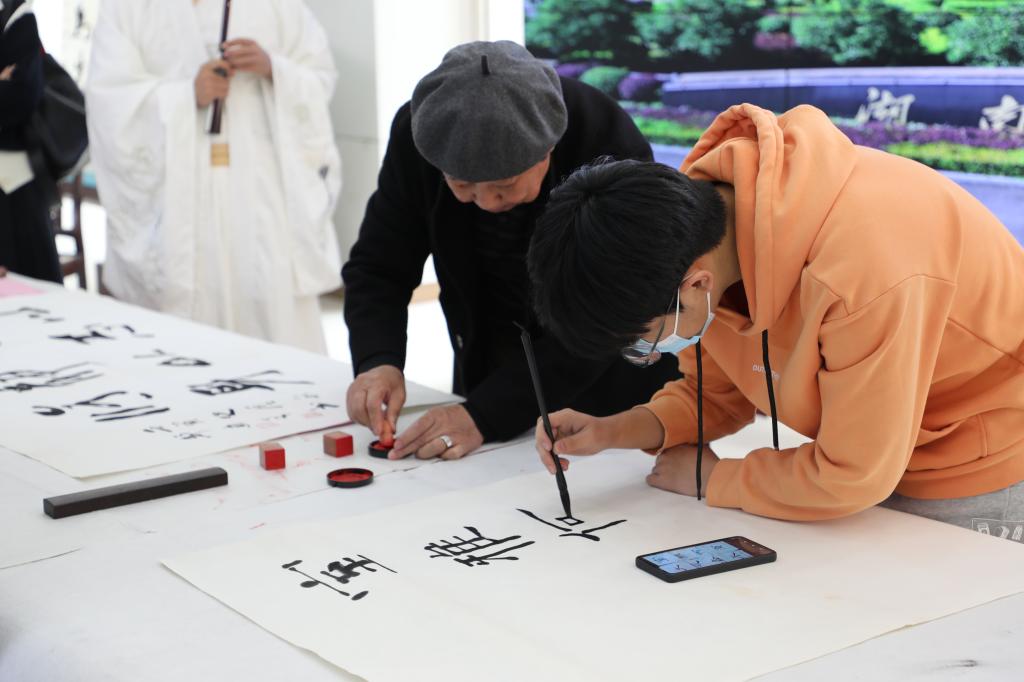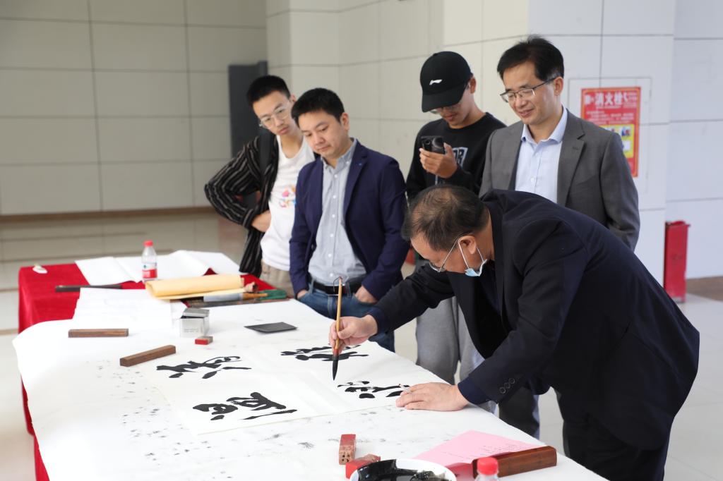 师生一起现场观摩书法创作过程