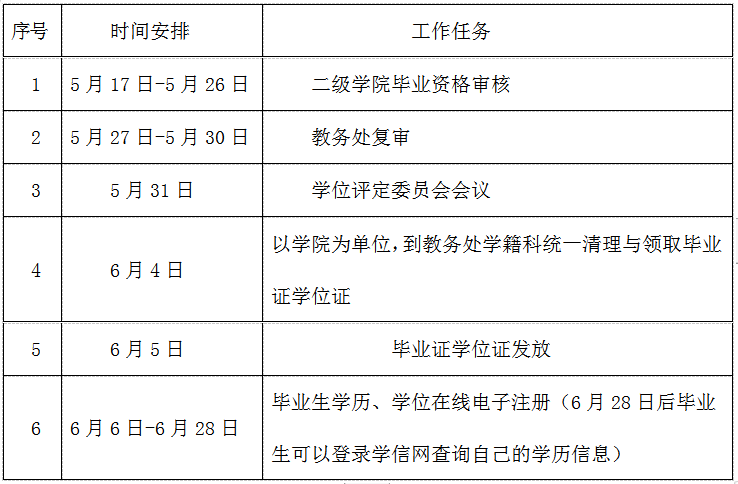二、毕业资格审核及学历电子注册工作时间安排表