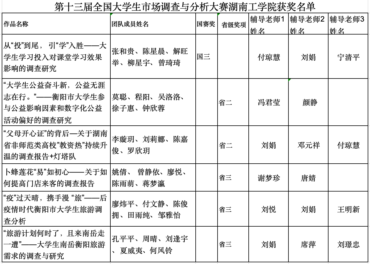 喜讯:WilliamHill官网代表队在第十三届全国大学生市场调查与分析大赛上荣获国赛三等奖一项,省级二等奖二项,省级三等奖三项。具体名单如下: