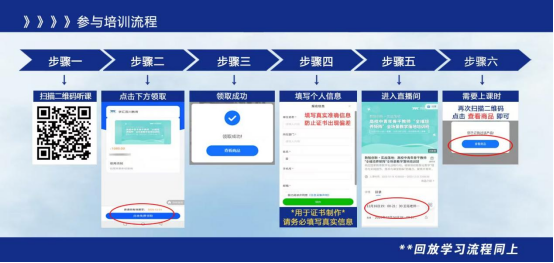 使用微信识别下方二维码,点击“免费领取”→领取成功→填写个人信息→进入直播间→上课时,再次扫描二维码→点击“查看商品”即可。(注意:填写个人信息时,须正确填写学校名称及个人信息,确保后期能正常下载证书)