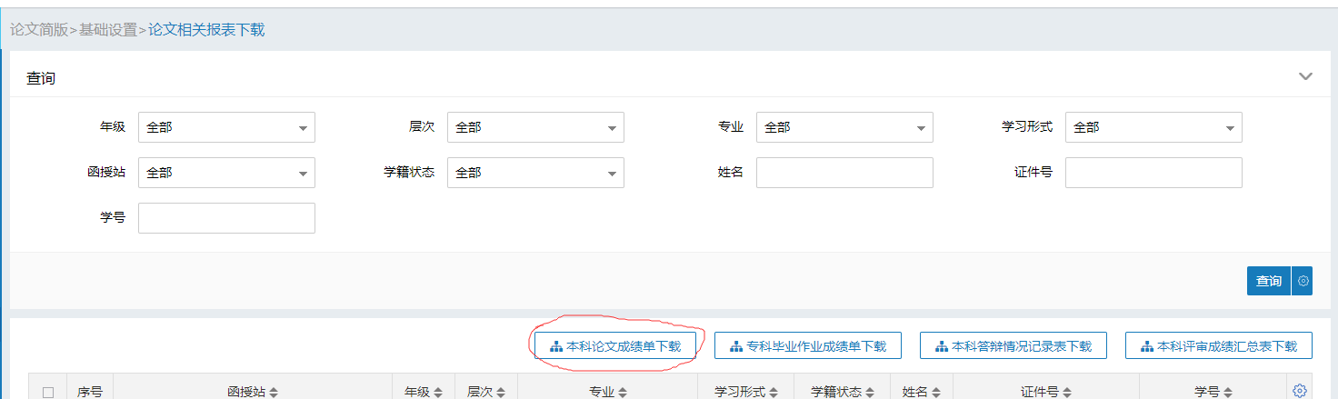 答辩所需样表《WilliamHill中文官方网站成人高等教育本科毕业论文(设计)情况登记表》(见附件),《本科论文成绩单》在学院教学管理平台下载:“论文简版-论文相关报表下载”。