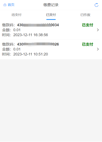 6、回到首页,查看缴费记录并下载电子缴款书