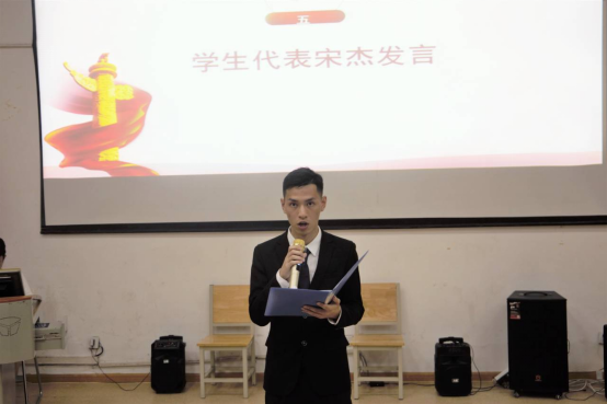 机设1902班宋杰代表学生发言,他与同学们一起学习和感悟党的百年历史中蕴含的精神内涵,并代表全体同学表示,作为21世纪的新青年,要勇敢地承担起党和国家赋予我们的重托,把自己的人生理想与祖国、时代命运联系起来,认真学习、正确认识党的光辉历史和伟大功绩,努力提高自身的理论水平,以史为镜,不断总结经验,为把我们祖国建设得更加强大而努力奋斗!