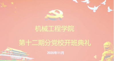 11月26日晚,机械工程学院分党校在4209B举行第十二期分党校开班仪式暨第一次专题党课。校学工处处长李文珊应邀主讲,院党委书记王丽娟、党委委员黄春喜、全院辅导员与入党积极分子参加会议。院党委副书记王本强主持开班仪式。
