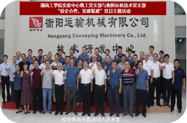 为探索基层党建工作新思路、新模式,构建“资源共享、双向服务、合作共赢、党建创新”的党建工作新格局。7月28日下午,机械工程学院实验中心教工党支部全体党员赴衡阳运输机械有限公司,与该公司技术党支部开展“校企合作,党建联建”党日主题活动。校长罗建华、党委副书记张平、发展规划与校企合作处处长刘文华、机械工程学院院长刘吉兆、机械工程学院党委书记王丽娟,衡阳运输机械有限公司党委书记黄四元、总经理李正忠等出席活动,活动分为“党建联建工作站”签约仪式及“校企技术合作交流座谈”二个内容,由衡阳运输机械有限公司工会主席龙涛主持。