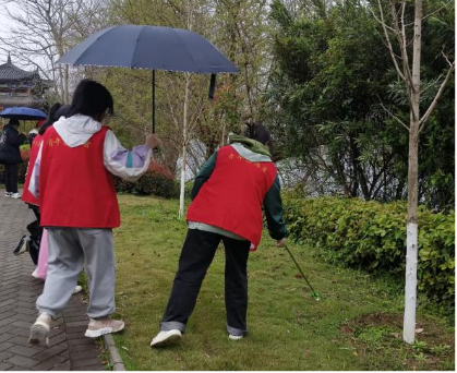 从公交车下车,经过十几分钟的步行,志愿者们进入岛内。大家一同动手改善岛上卫生,捡拾东洲岛公园公共场所(广场,过道,厕所),清理卫生死角、清除白色垃圾等活动,帮助整治脏、乱、差,实现洁、齐、美。在打扫的过程中,虽然下着小雨,但志愿者们奉献自我,服务社会的热情并没有因此减退。