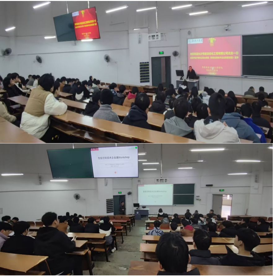 2024年12月9日-12日,长沙博途自动化工程有限公司沈进林总经理、李学仁副总经理等企业专家一行应邀面向我院自动化专业21级三个班的同学在机械楼4409、4507、4609教室开讲了为期四天的《智能控制技术企业项目实践》校企合作课程。