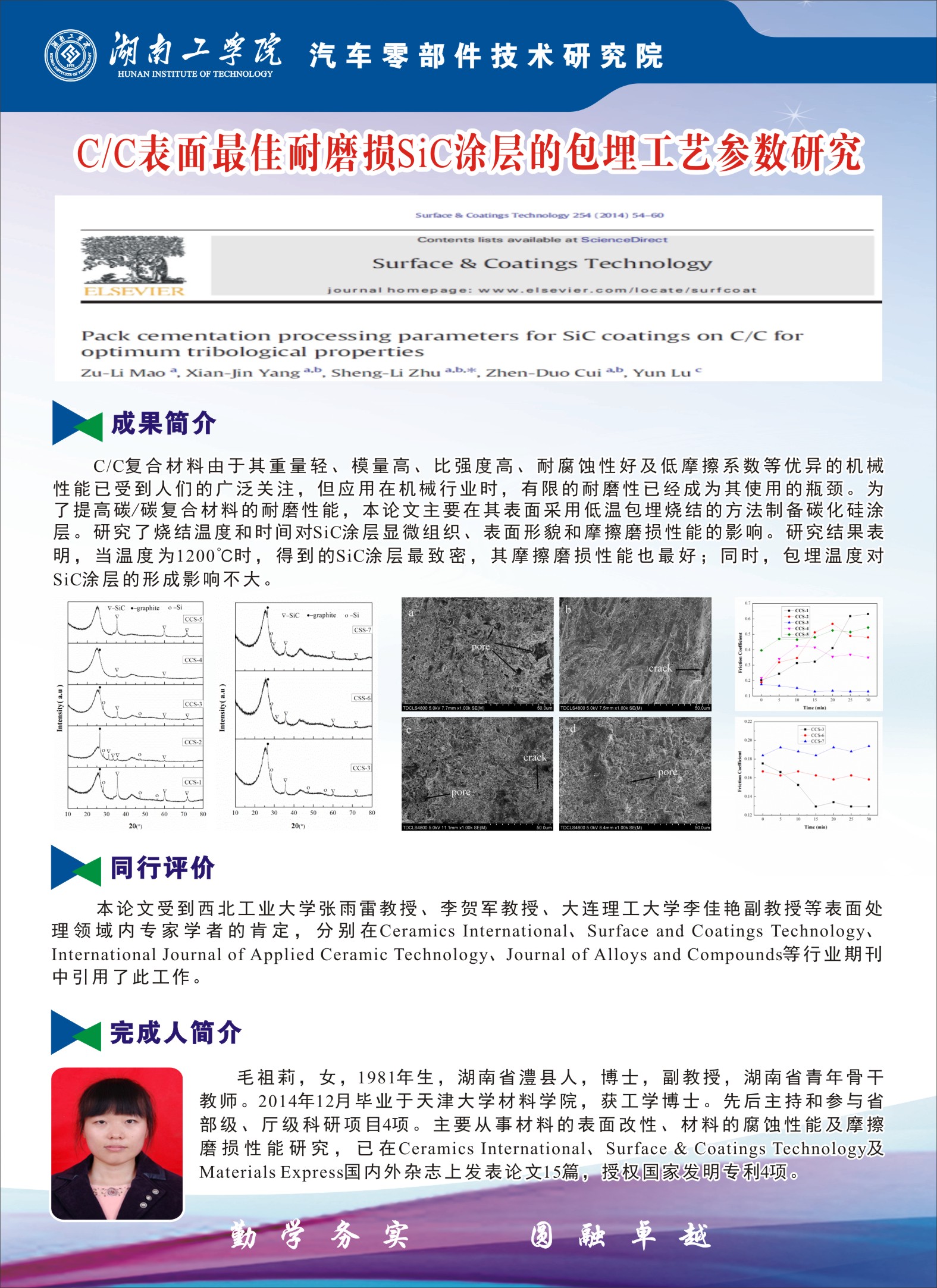 毛祖莉---C/C表面最佳耐磨损SiC涂层的包埋工艺参数研究